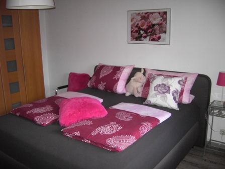 Erholen Sie sich im Schlafzimmer. Ausgestattet mit einem großen Bett und Kleiderschrank können Sie sich so richtig im Urlaub erholen. Für frische Bettwäsche sorgen wir gerne.